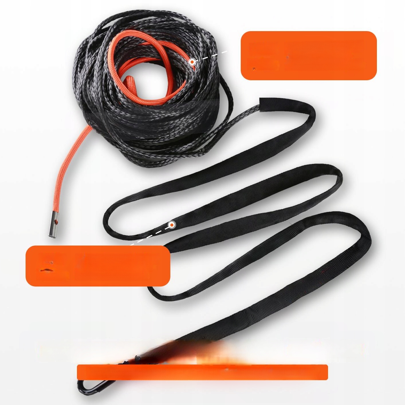 Трос оснащен 5-футовым нейлоновым передним защитным рукавом, противоскользящим и износостойким, а также оранжевым предупреждающим рукавом длиной 6 футов, указывающим движение троса лебедки. Защита с обоих концов предотвращает чрезмерный износ и сохраняет натяжение веревки.