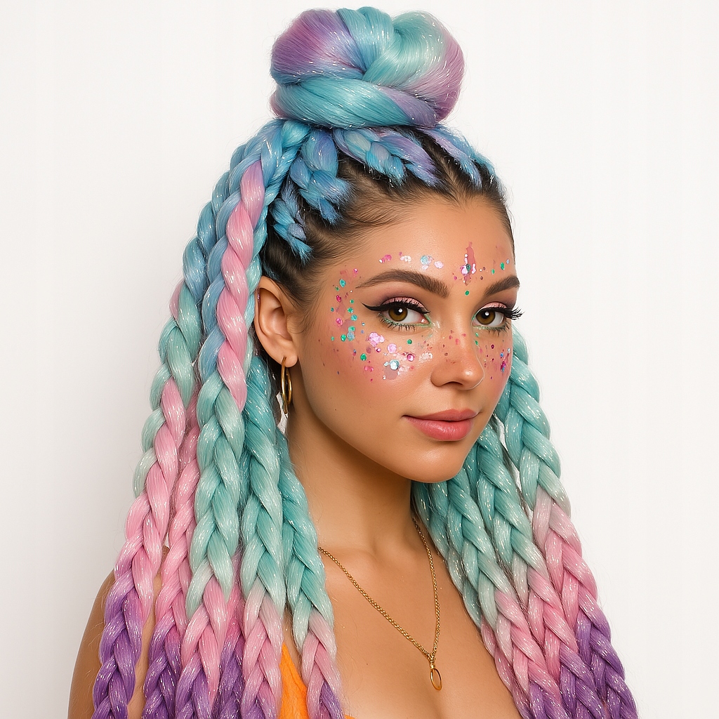 ✨brokatt нить, вплетенная в структуру волос - в оттенках серебра, золота и красочных отражений - что придает прическе уникальный блеск и гламурный эффект. Идеально подходит для фантазийного стиля, фестивального образа или творческих косичек. h2>