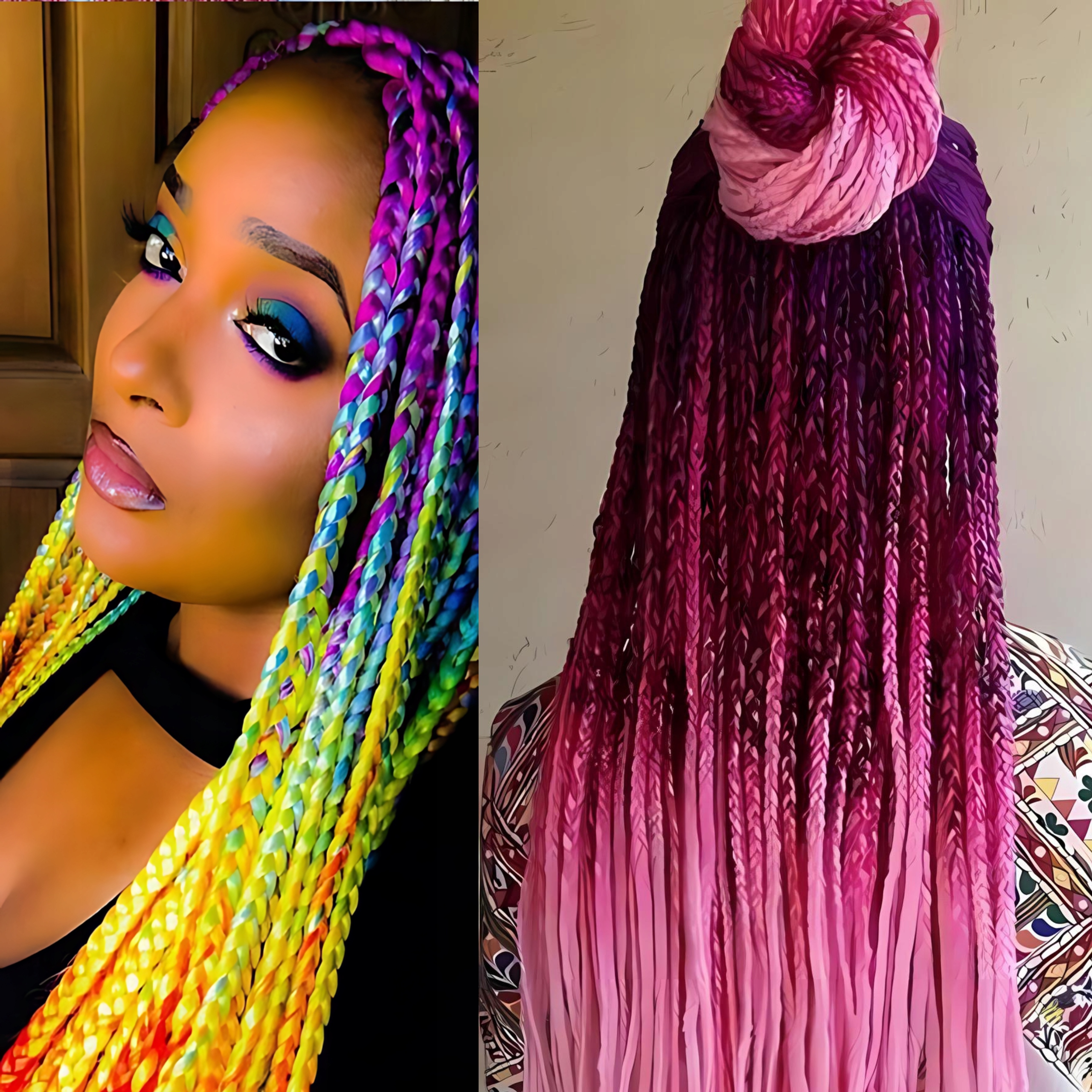 ➡ окраска омбре : плавные переходы между различными оттенками, давая глубину и динамику косичек.