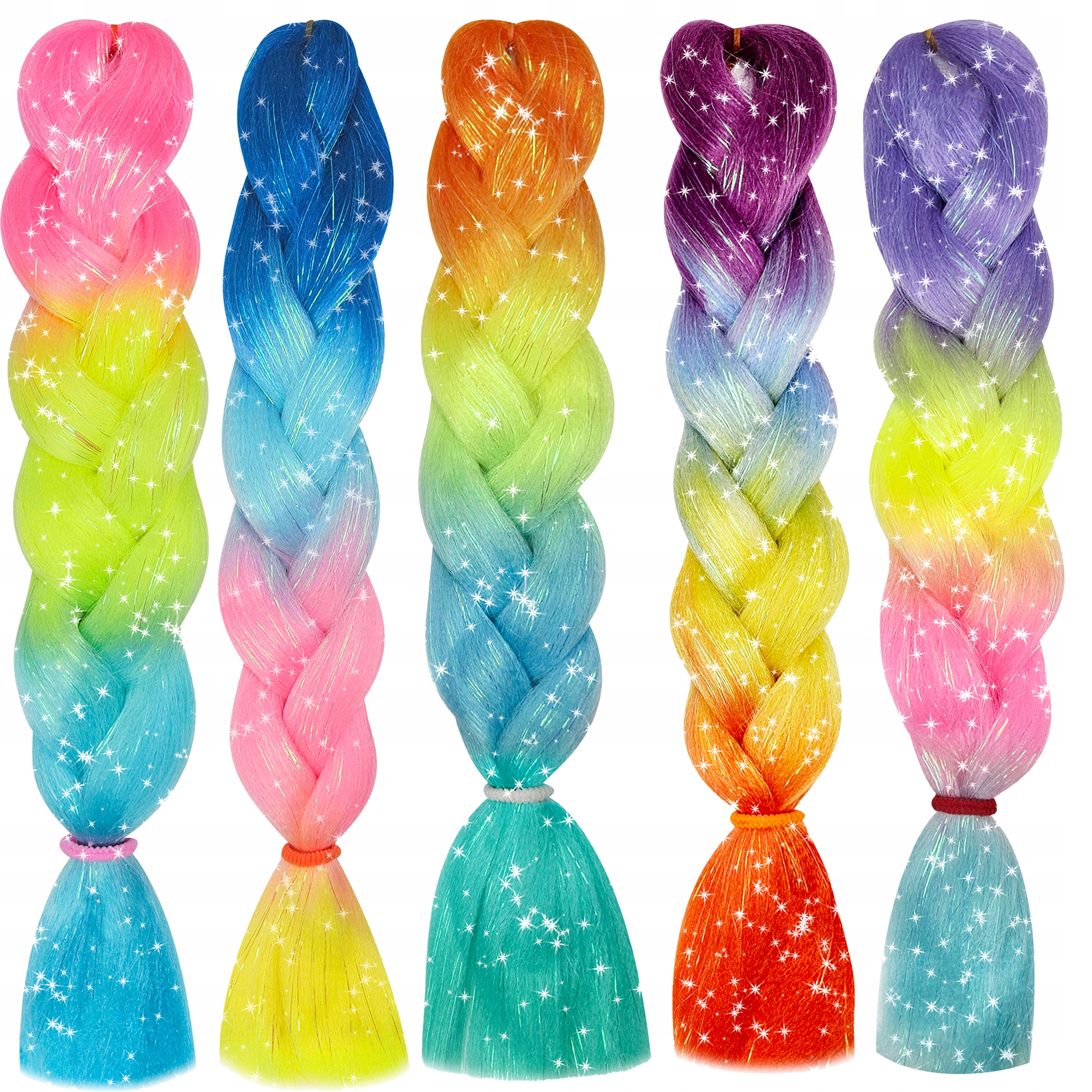 Набор из 5 блеска для косичек - много -сочетание безумия + набор бусинок 50 ПК и неоновых каучуков. Спасибо сильным цветам и блестящим темам, которые вы обязательно будете сиять!