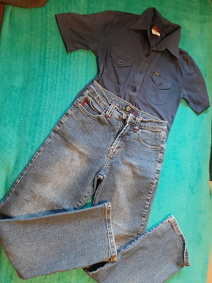 СИНЯ ФУТБОЛКА + ДЖИНСИ 36 РОЗМІР