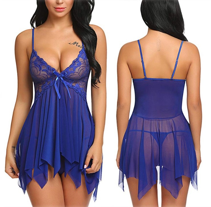 Наденьте ее для опьяняющего вечера с партнером, платье идет в комплекте. стринги. Футболка имеет разрез спереди.