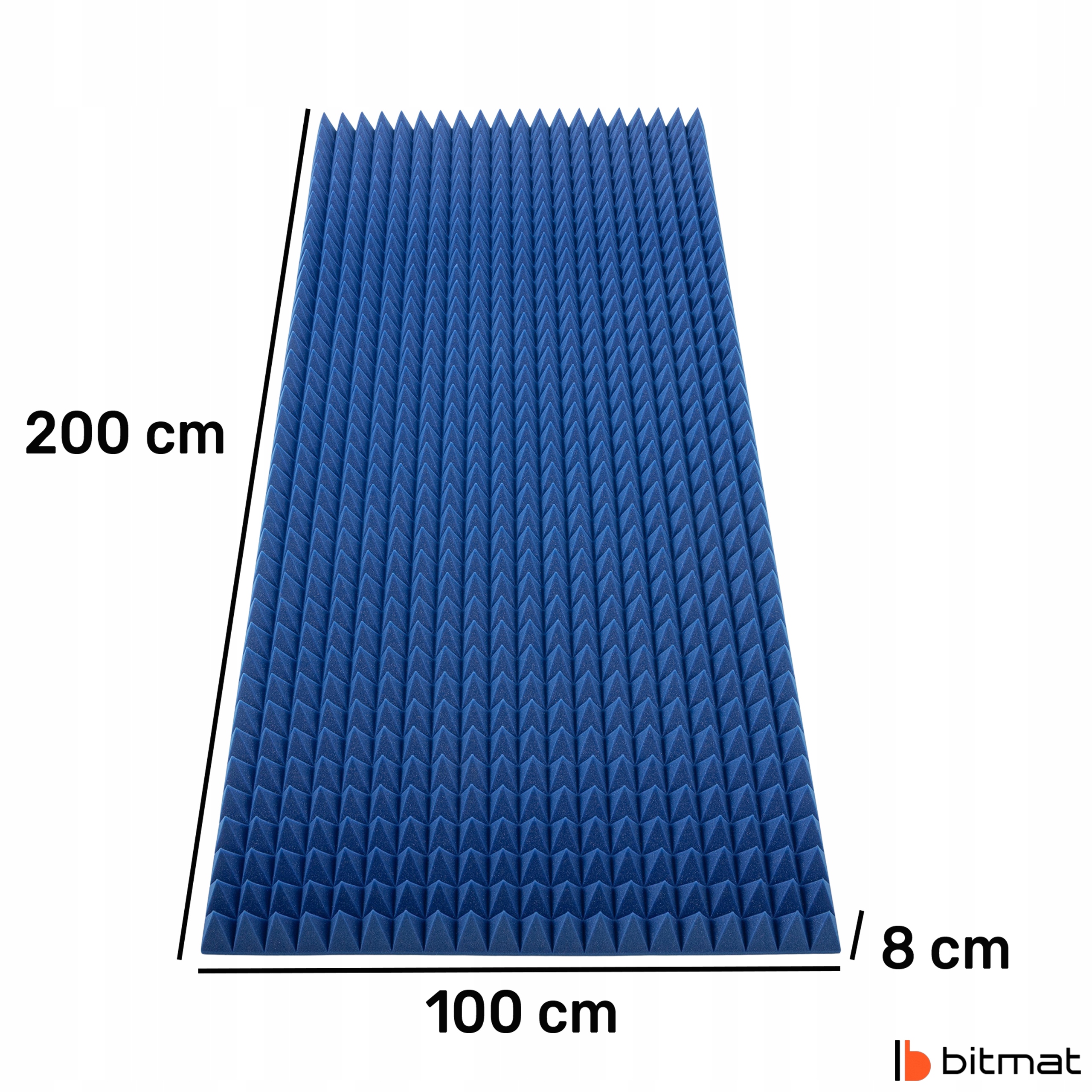 Пирамида битмата толщиной 8 см является большой эстетической акустической пеной с размерами 200 × 100 см, предназначенной для уменьшения реверберации, эхо и улучшения акустических условий в комнатах, требующих контроля звука. Благодаря использованию полиуретановой пены со структурой открытых ячеек, продукт эффективно поглощает звуковые волны и улучшает качество прослушивания и записей. Пена была произведена в Польше, сохраняя высокие стандарты качества и безопасности. Интенсивный, синий цвет дает современный характер интерьерам.