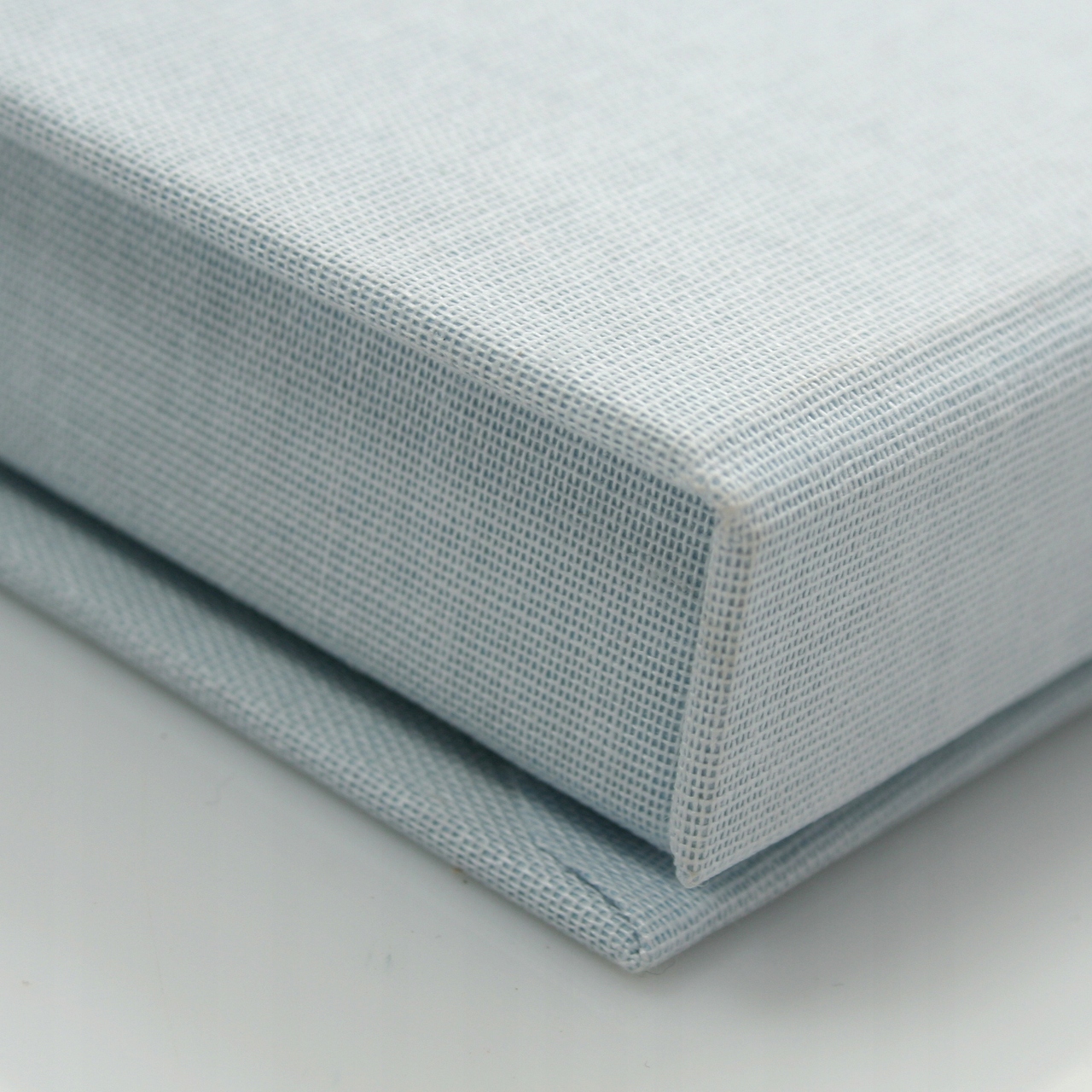 Коробка изготовлена из плотного картона, покрытого пастельным холстом.