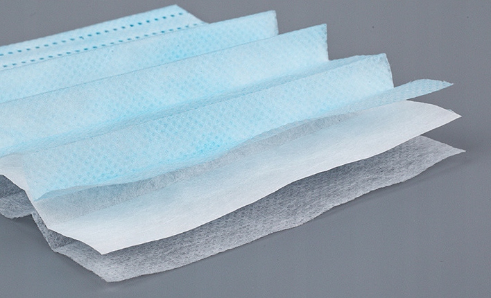 Маска трехслойная хирургическая состоит из двух наружных слоев защитного нетканого материала (спанбонд) и внутреннего фильтрующего слоя (мелтблаун).