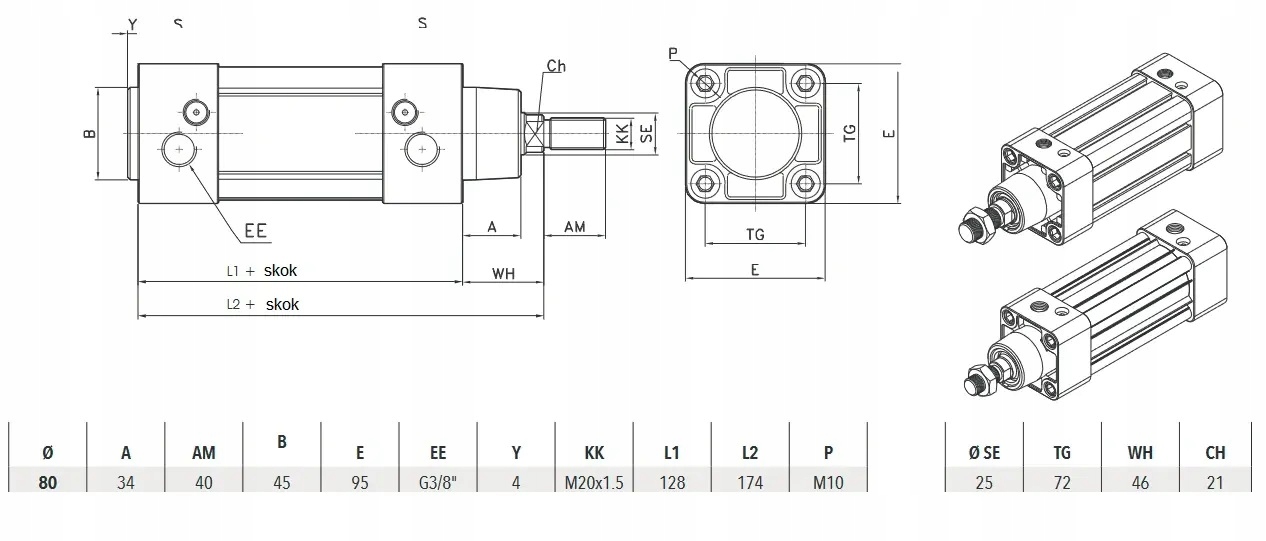 Siłownik pneumatyczny 80x100 dwustronnego działania dwustronny