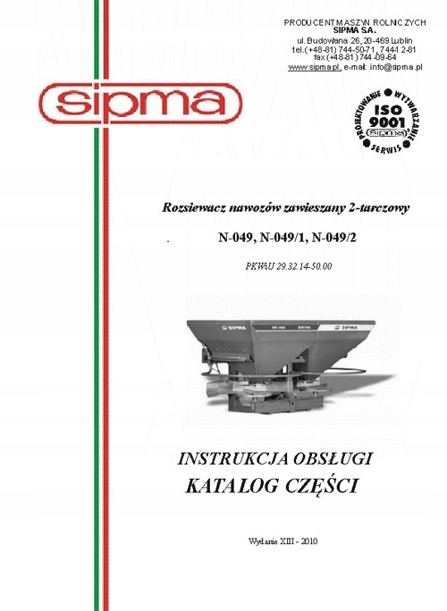 SIPMA N-049...N-049/2 - інструкція з експлуатації, каталог деталей, таблиця висіву