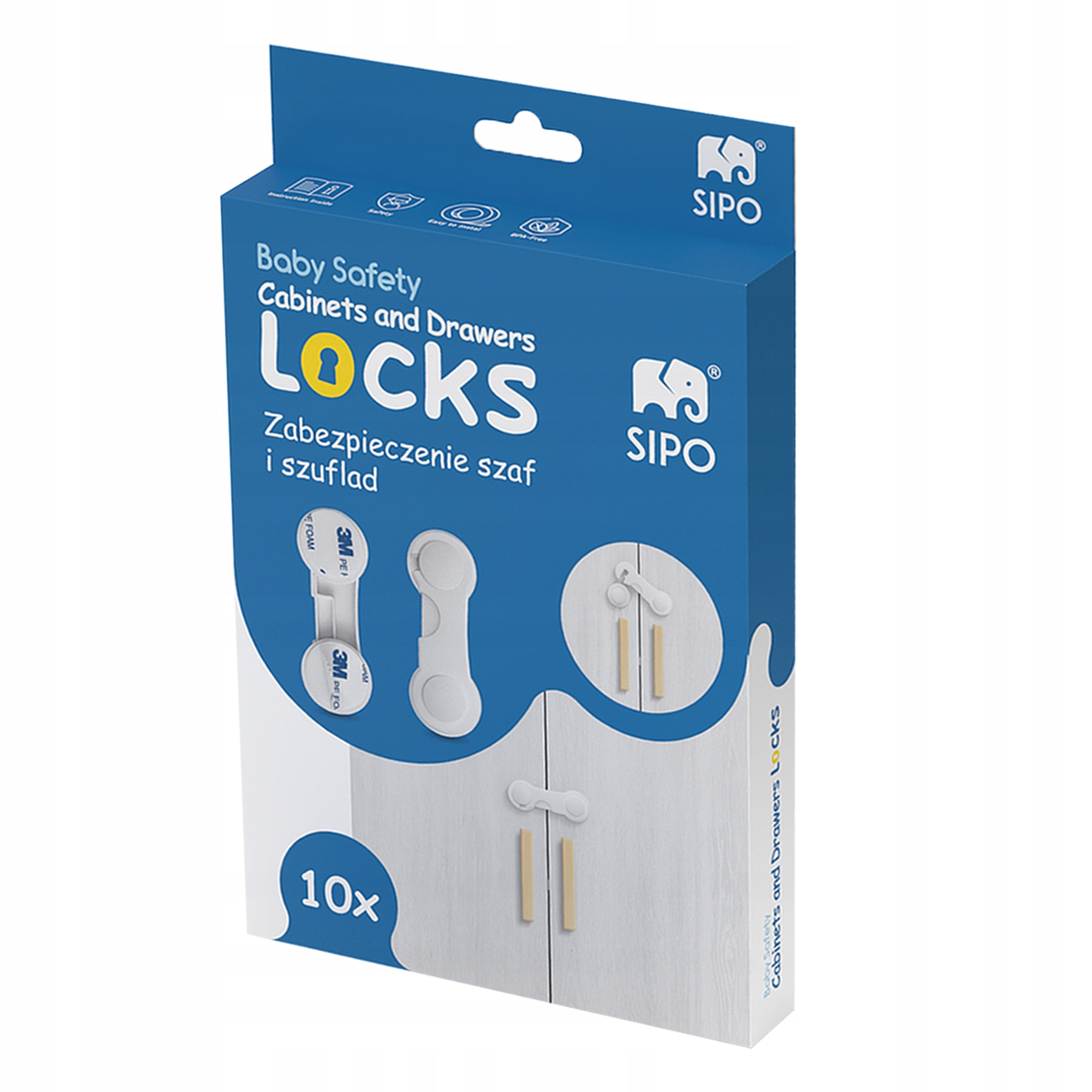 Блокировка шкафы и ящиков против детей на защелке Sipo - это набор из 10 безопасности. Это идеальное решение для родителей с маленькими детьми, которые хотят обеспечить свою безопасность дома. Эти средства защиты просты в использовании, и эффективно защищает от случайного открытия мебели детьми. Безопасность для шкафов и ящиков - это практическое устройство, которое обеспечивает безопасность вашего ребенка, не позволяя ему получить доступ к опасным объектам или веществам, хранящимся в шкафах и ящиках.