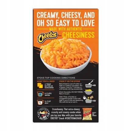 Если вам нравится Cheetos, вам обязательно понравятся Cheetos Mac 'N Cheese Bold & Cheesy 170 г! Это популярное блюдо из пасты со сливочно-сырным соусом, по вкусу напоминающее ваши любимые чипсы.