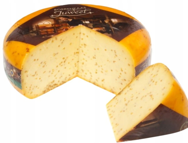Фермерский сыр с добавлением семян пажитника, нарезанных вручную прямо из целого круга. Благодаря пажитнику сыр приобретает слегка пряный, ореховый вкус, который прекрасно разнообразит классическую, нежную Гауду.