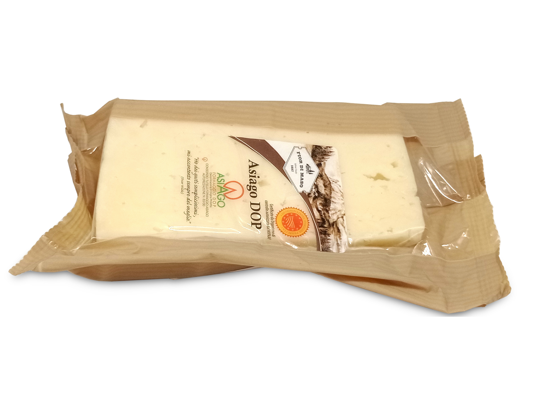 Asiago DOP — превосходный итальянский сыр, изготовленный из коровьего молока, получивший признание качества как Denominazione di Origine Protetta (DOP), что подтверждает его подлинность, происхождение и традиционные методы производства. Это сыр из региона Италии, включающего провинции Виченца, Тренто, Падуя и Тревизо.