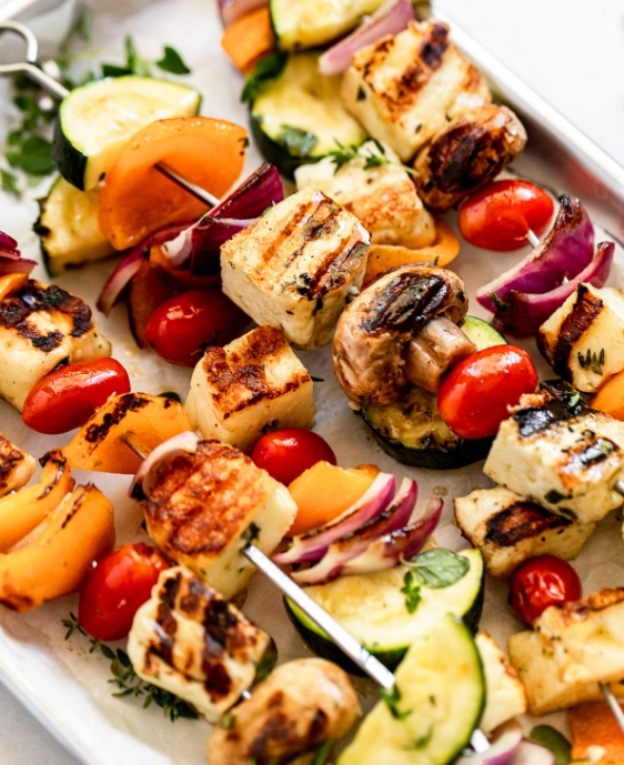 - Овощные шашлычки с халлуми: Используйте сыр халлуми в качестве ингредиент овощных шашлыков. Нарежьте сыр кубиками и наденьте их на шампуры вместе с овощами, такими как перец, кабачки, лук или черри. Жарьте шашлычки, пока овощи не станут мягкими, а сыр слегка подрумянится. Вы также можете добавить кусочки лаваша, чтобы получить вкусное и сытное блюдо.
