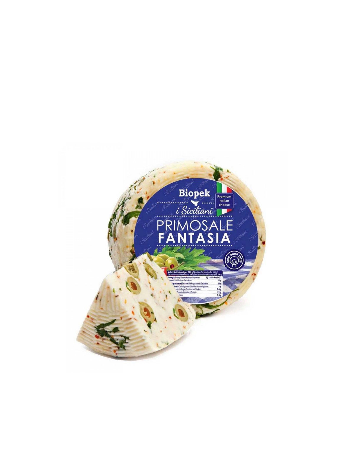 Сир Овечий PECORINO FANTASIA РУКОЛА - ОЛИВКИ - ПЕПЕРОНЧІНО 150г