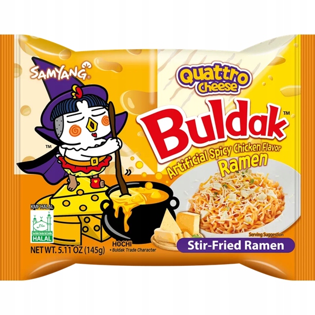 Знаменитая паста корейского самунга в сырной бомбе! Samyang Quattro Cheese сочетает в себе культовый острый соус булдак с вкусной смесью из четырех видов сыра. Острый вкус в сочетании со сливочным сырным соусом, создавая незабываемый опыт для всех выразительных и оригинальных вкусов. Лапша готова через несколько минут - просто готовьте, добавьте соус и наслаждайтесь идеальным сочетанием пряности и деликатесов с сыром.