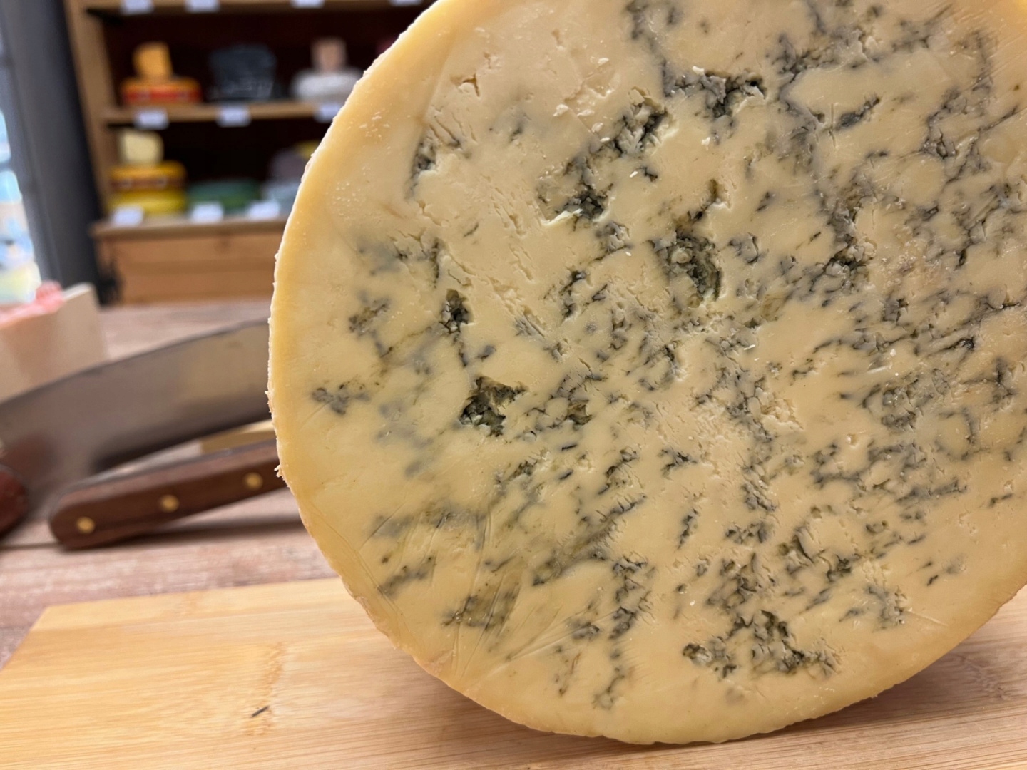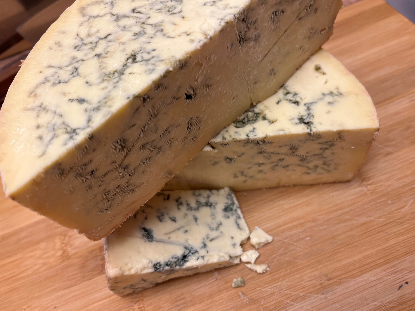 Идеальный Стилтон имеет характерные синие прожилки, исходящие из центра, и характерный пряный вкус.