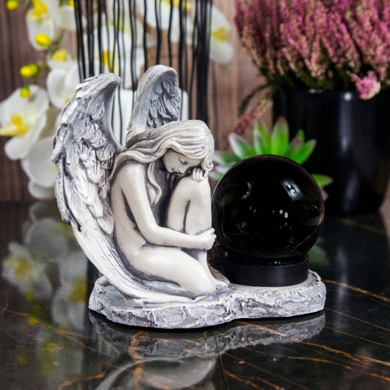 ➡️ Декоративная гипсовая садовая фигурка-надгробие со светодиодной лампой в форме ангела