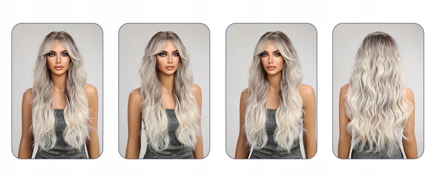 Сіра градієнтна перука, довге волосся, хвиляста натуральна чубчик