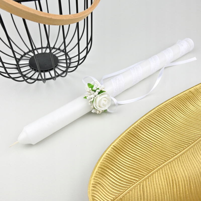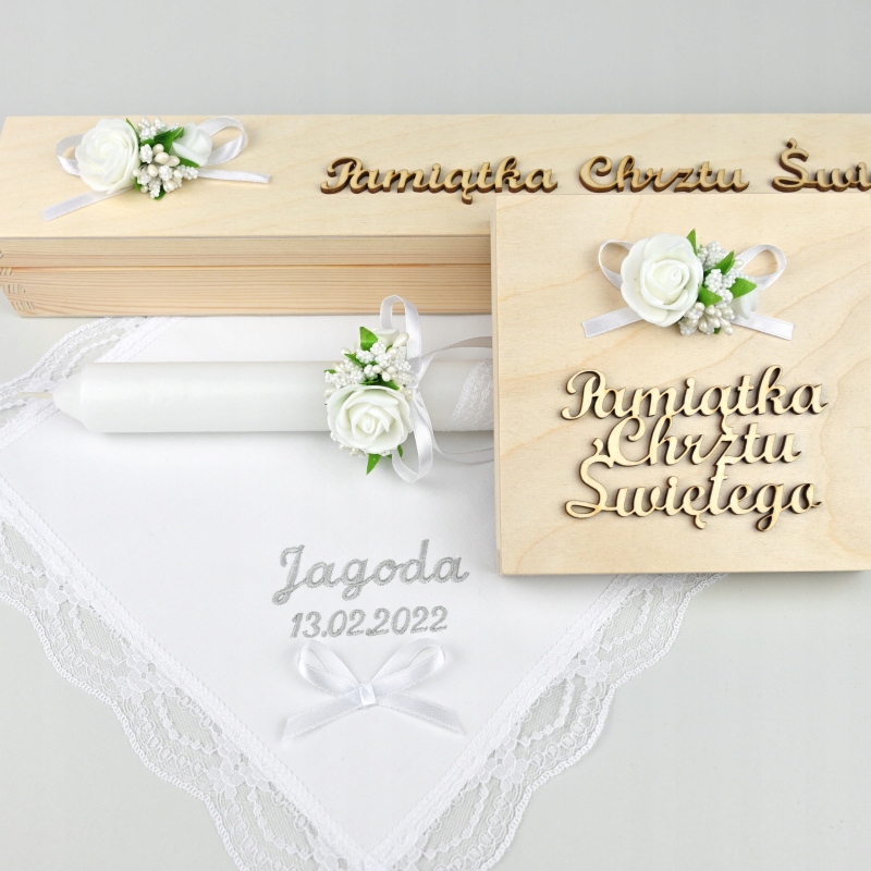 СІРА ХРЕСТИННА СВІЧКА НАБІР СІРА ВИШИВКА ВИШИВАНЕ ІМ'Я ДАТА БІЛІ КВІТИ