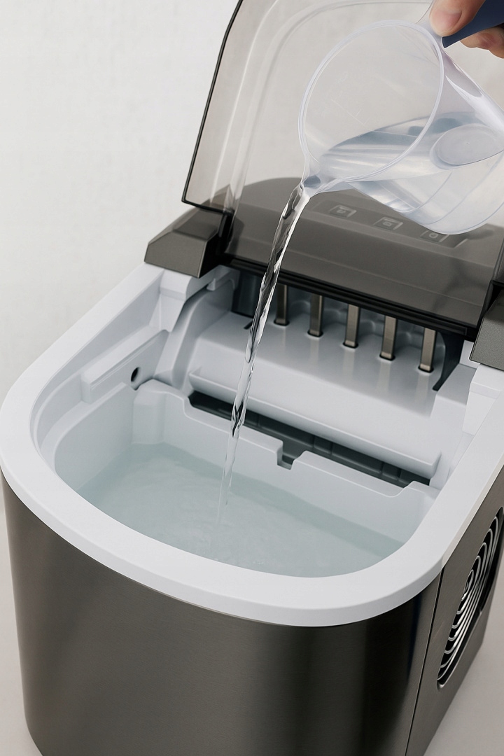 Прозрачная пластиковая крышка позволяет наблюдать за производством льда на постоянной основе - без прерывания работы устройства. Взвешивание всего 8,3 кг - это удобство использования в разных местах - просто подключитесь к электричеству и добавьте воду.