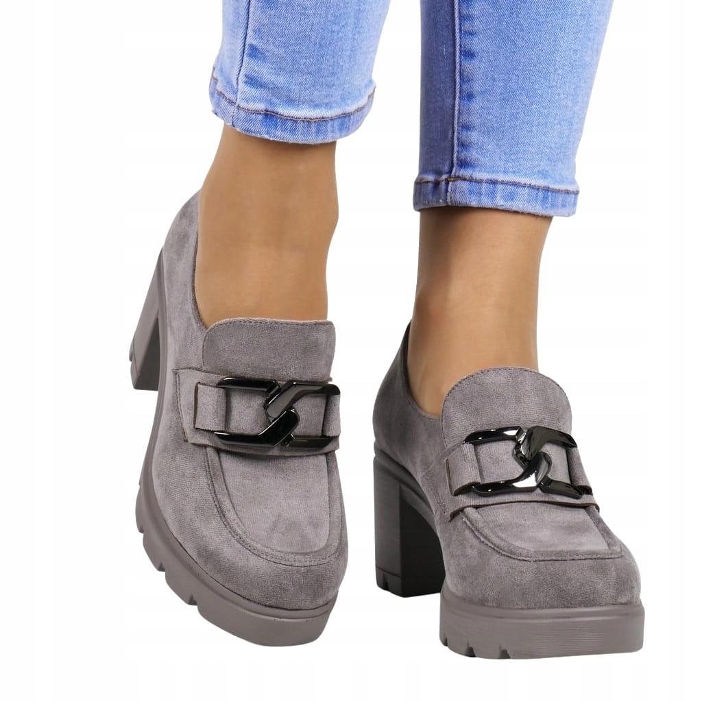 КОМФОРТНЫЕ ТУФЛИ НА КАБЛУКЕ, МОКАСИНЫ НА ВЫСОКОМ КАБЛУКЕ, НОВЫЙ ЦВЕТ, СЕРАЯ ЗАМША, ЛЕГКИЕ