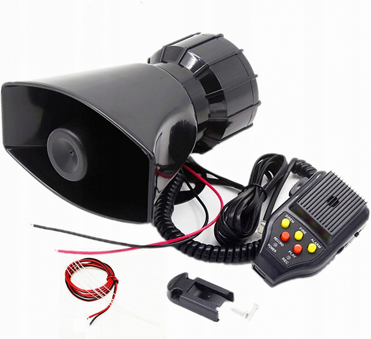 Динамики автомобильной сирены встроены в аудиосистему. Благодаря этому микрофону и динамику вы можете общаться с другими людьми за пределами автомобиля. Вы также можете пошутить со своими друзьями, они не будут знать, кто говорит. Воспроизводит сигналы тревоги, сирены и сигналы охраны. Вы также можете записать собственное сообщение и воспроизвести его. Может быть установлен в любом транспортном средстве с питанием 12 В постоянного тока, в легковом автомобиле, грузовике, джипе, автофургоне, лодке и т. д.