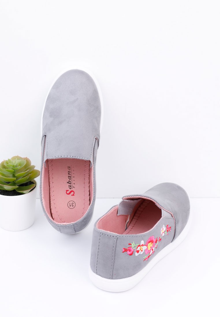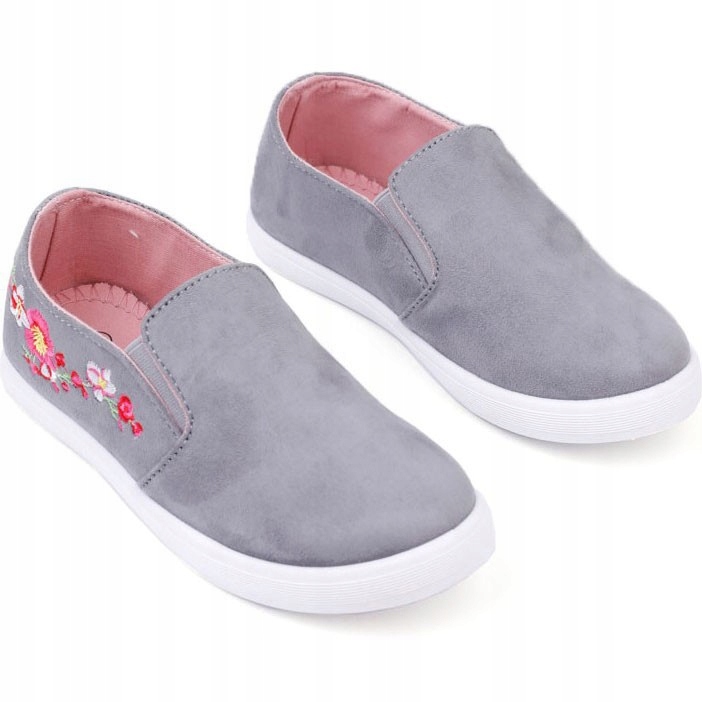 Кроссовки для девочек, установленные на белой резиновой подошве. Вырезать от Ekozamsz, на стороне, украшенной вышивкой в виде цветов. Проскальзывают эластики, сшитые по бокам, которые облегчают посадку на обувь. Очаровательные кроссовки будут соответствовать многим стилям.