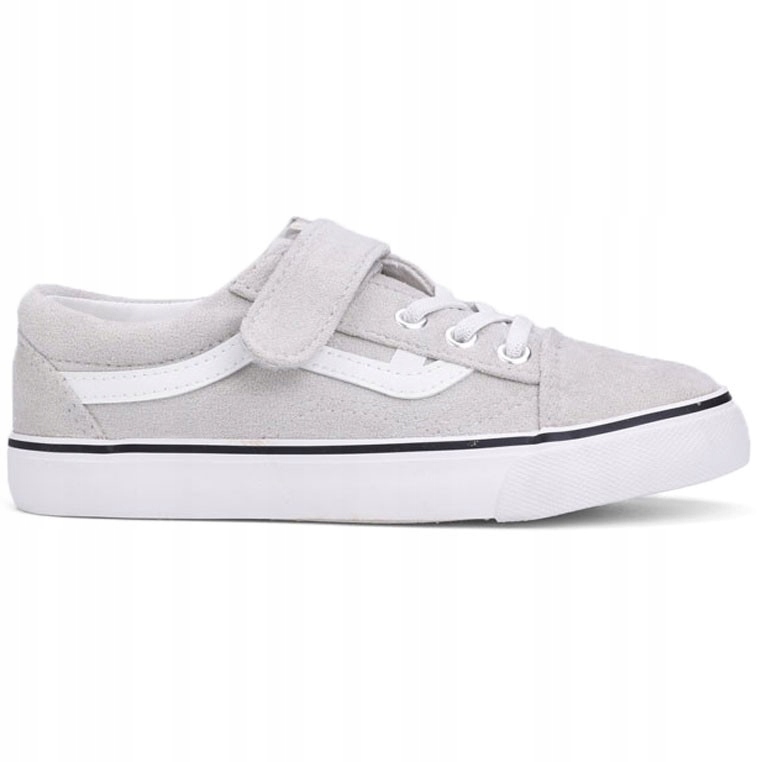 Детские кроссовки, на белой, плоской подошве. Закрепленная липучкой и шнурками. Низкая верхняя часть достижения перед лодыжкой. Характерная продолговатая вставка на стороне обуви. Модель известна и любила родители.