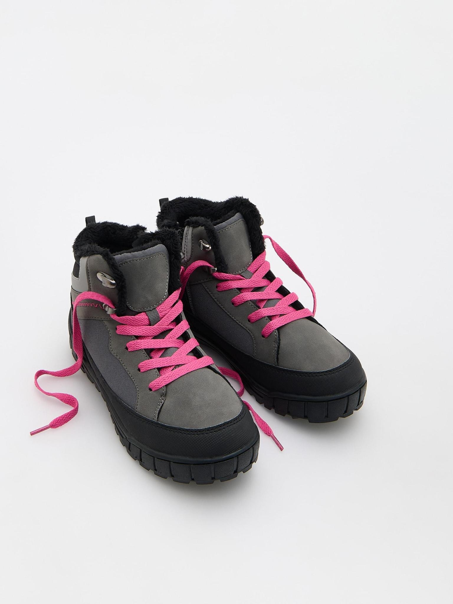 СЕРЫЕ УТЕПЛЕННЫЕ ТРЕККИНГОВЫЕ БОТИНКИ РОЗОВЫЕ ШНУРКИ МОЛНИЯ RESERVED 36