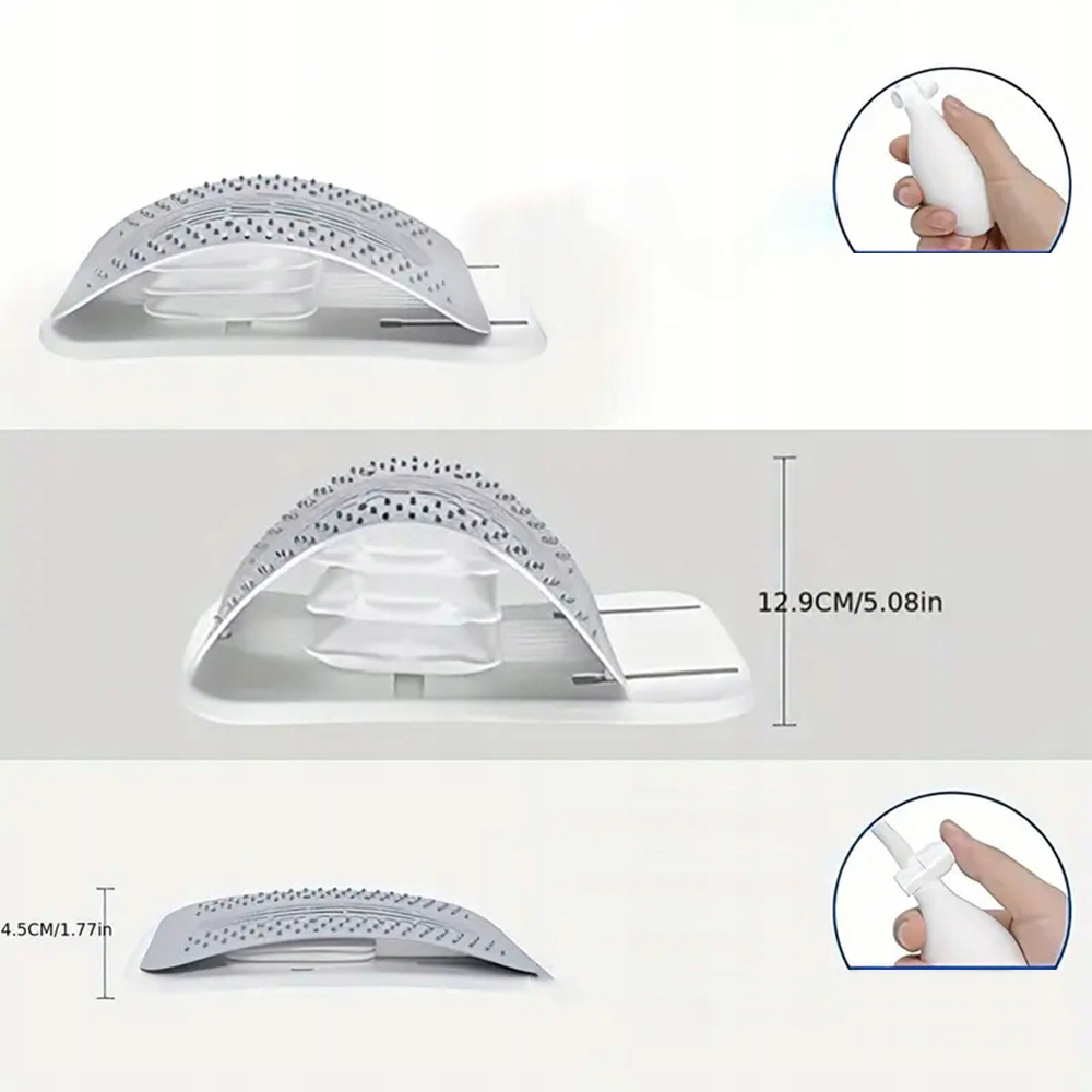 - Больше не ограниченный уровень, вы можете легко сжать ручку нашего носителя позвоночника или нажать кнопку под ручкой, чтобы быстро истощать воздух, скорректировать удобную арку в соответствии с вашими потребностями, чтобы соответствовать вашей спине и мышцам хорошо, что может эффективно снять боли на спине и расслабиться вашему телу.