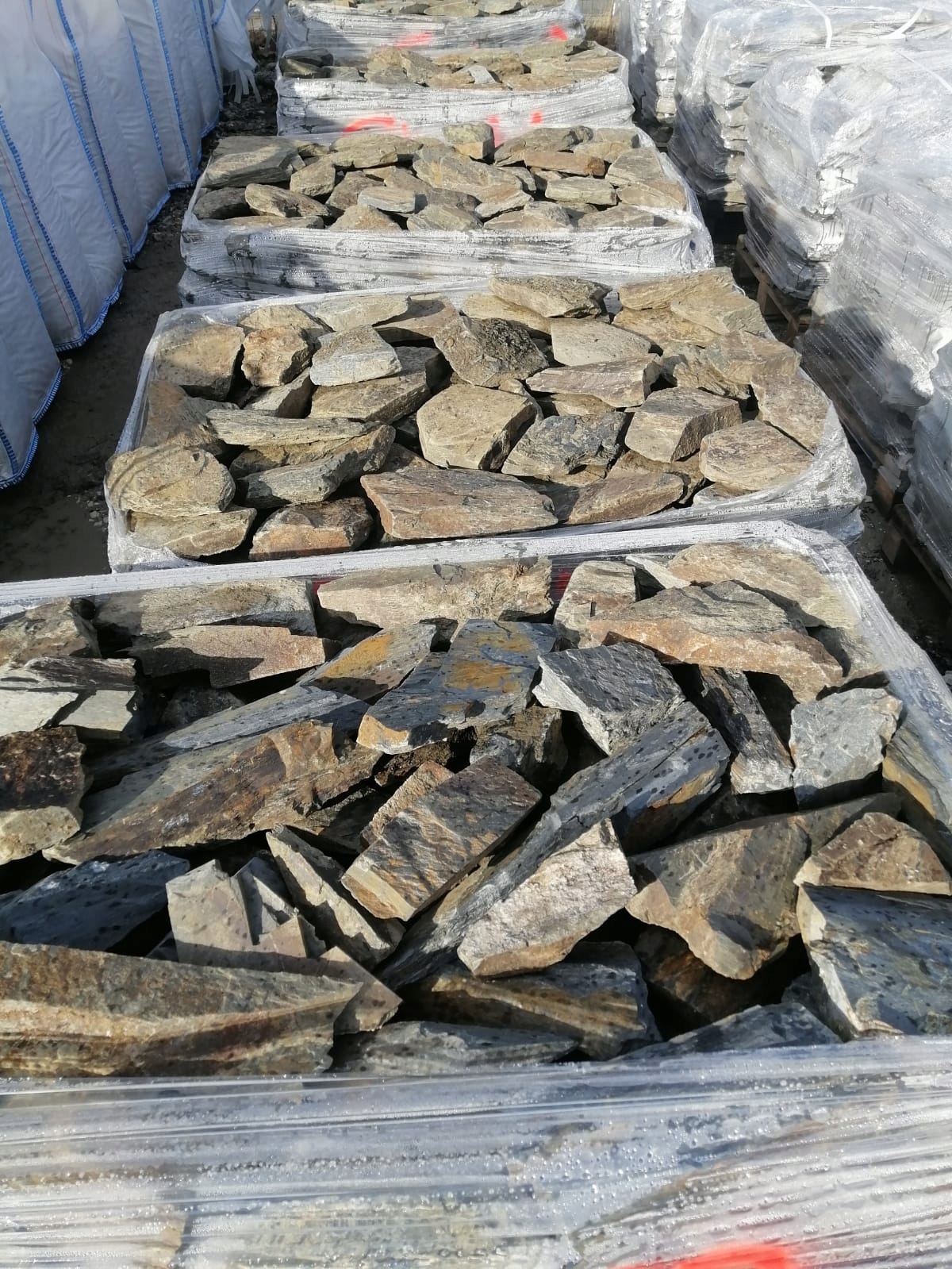 Камень продается на палитре 80x120 см. Средняя высота палитры с товарами составляет около 90 см. Вес одной каменной палитры составляет 1000 кг. (+/- 5% в зависимости от погодных условий)