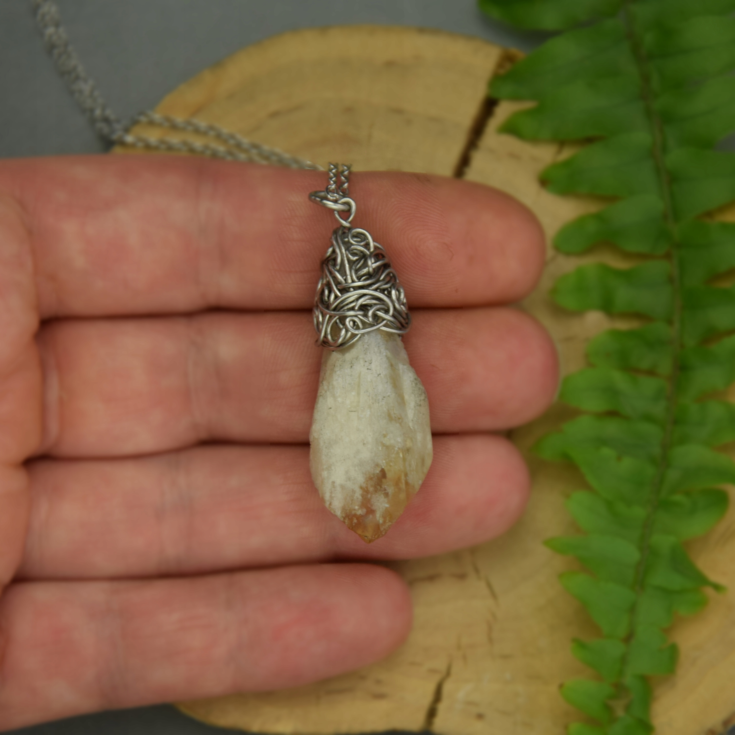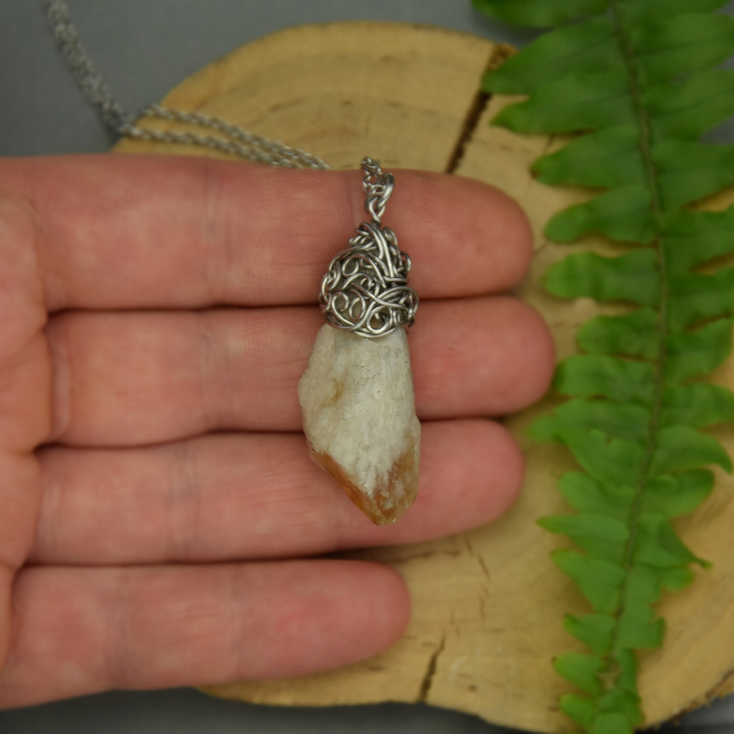 Подвеска уникальна - и рисунок проволоки, и сам камень уникальны. Другого такого же кулона нет. Ношение цитрина с собой придает смелости и стимулирует внутреннюю мотивацию. Защищает от деловых ошибок. Его используют для привлечения денег. Это идеальный камень для людей, начинающих свой бизнес, а также для тех, кто переживает кризис и нехватку денег. Это помогает понять источник проблем.