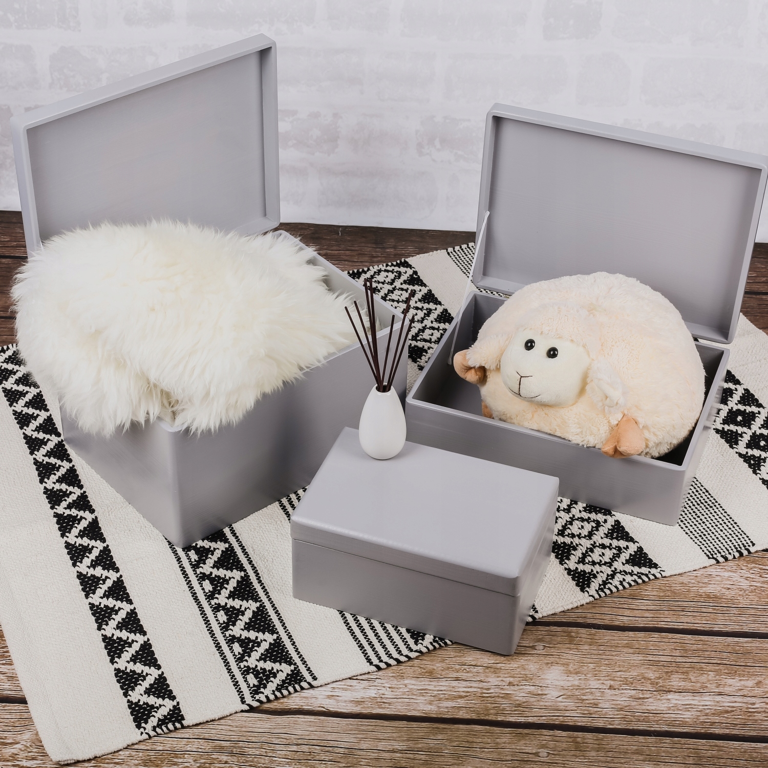 Сірий дерев'яний ящик з кришкою 40х30х24 см
