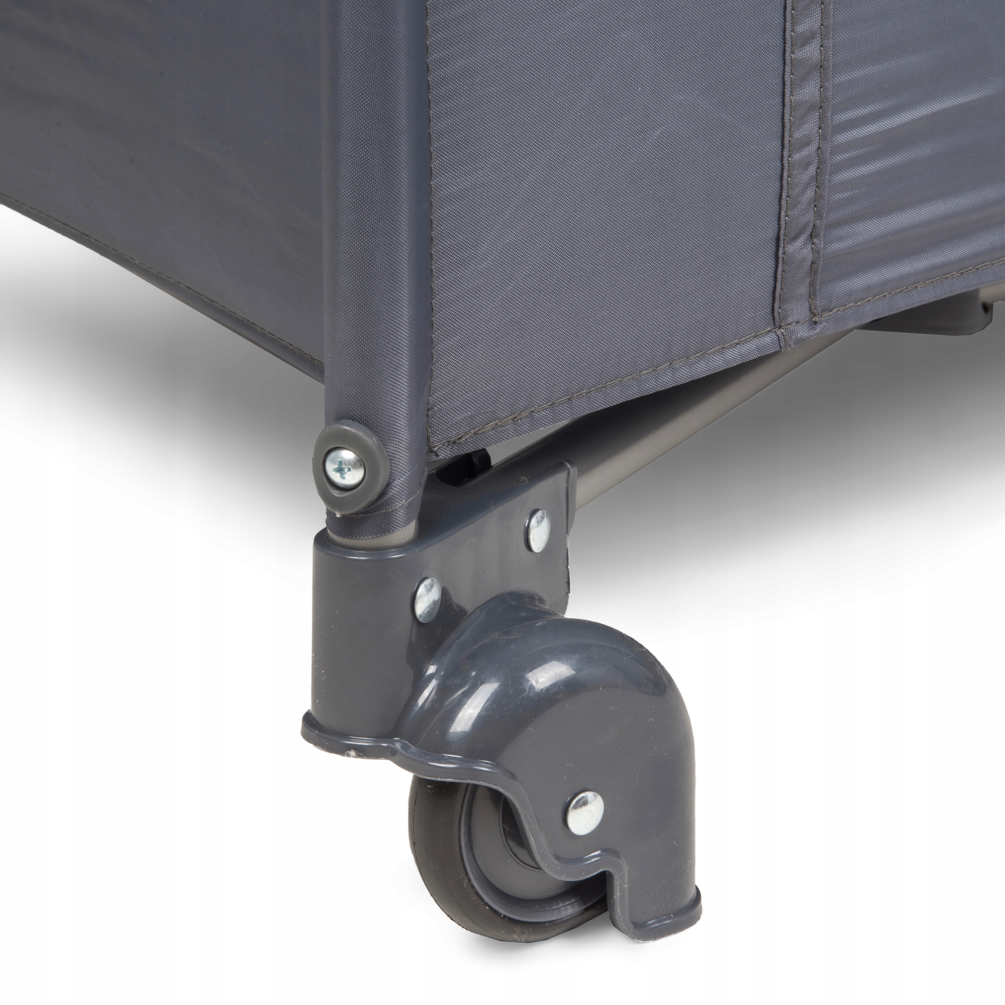Серые детские туристическая кроватка + изменяющиеся таблицы + навес + аксессуары