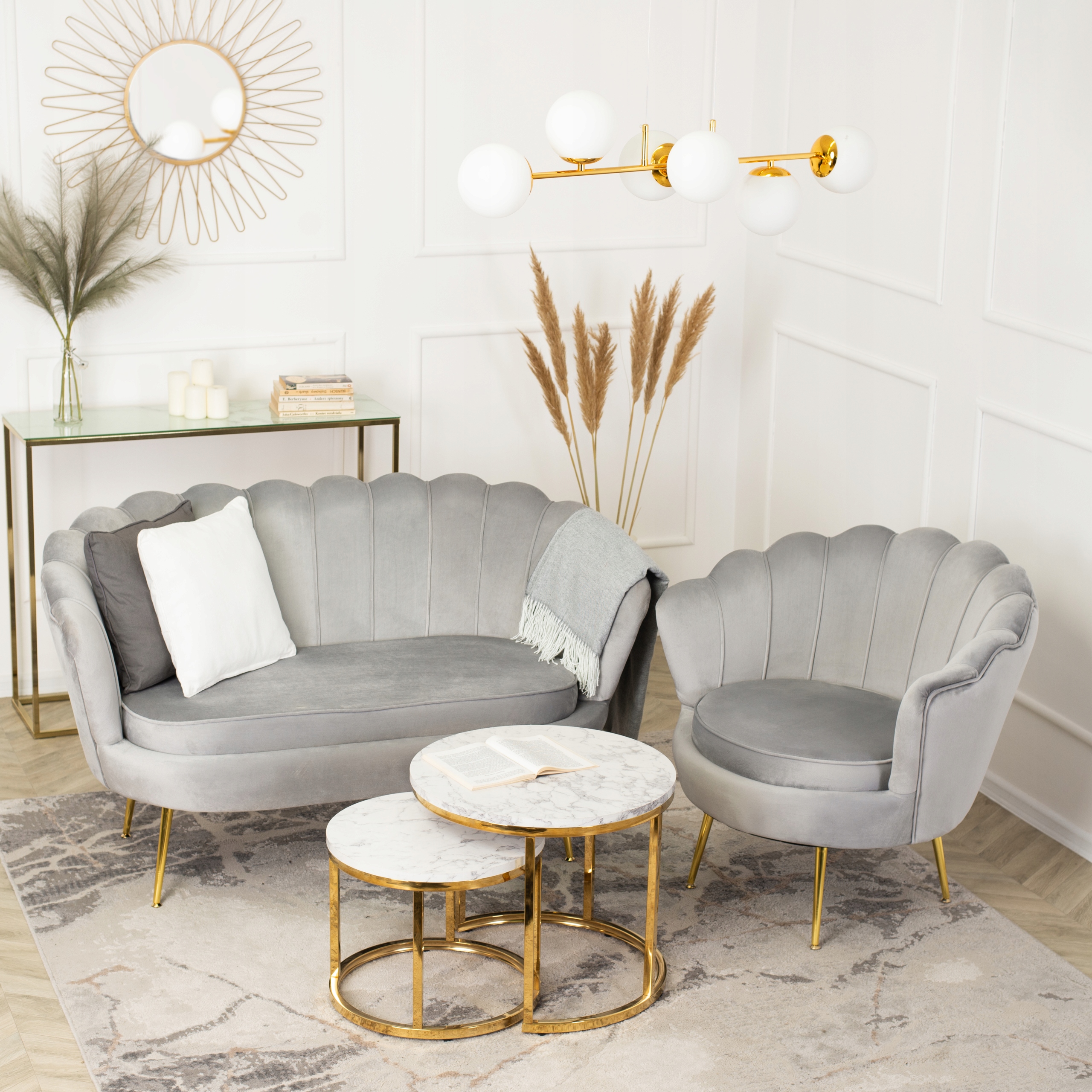 Мебель имеет эффективные спины в Стиль оболочки и Золотые ножки , что заставляет их выглядеть красиво и привлекает внешность. Мягкая обивка.