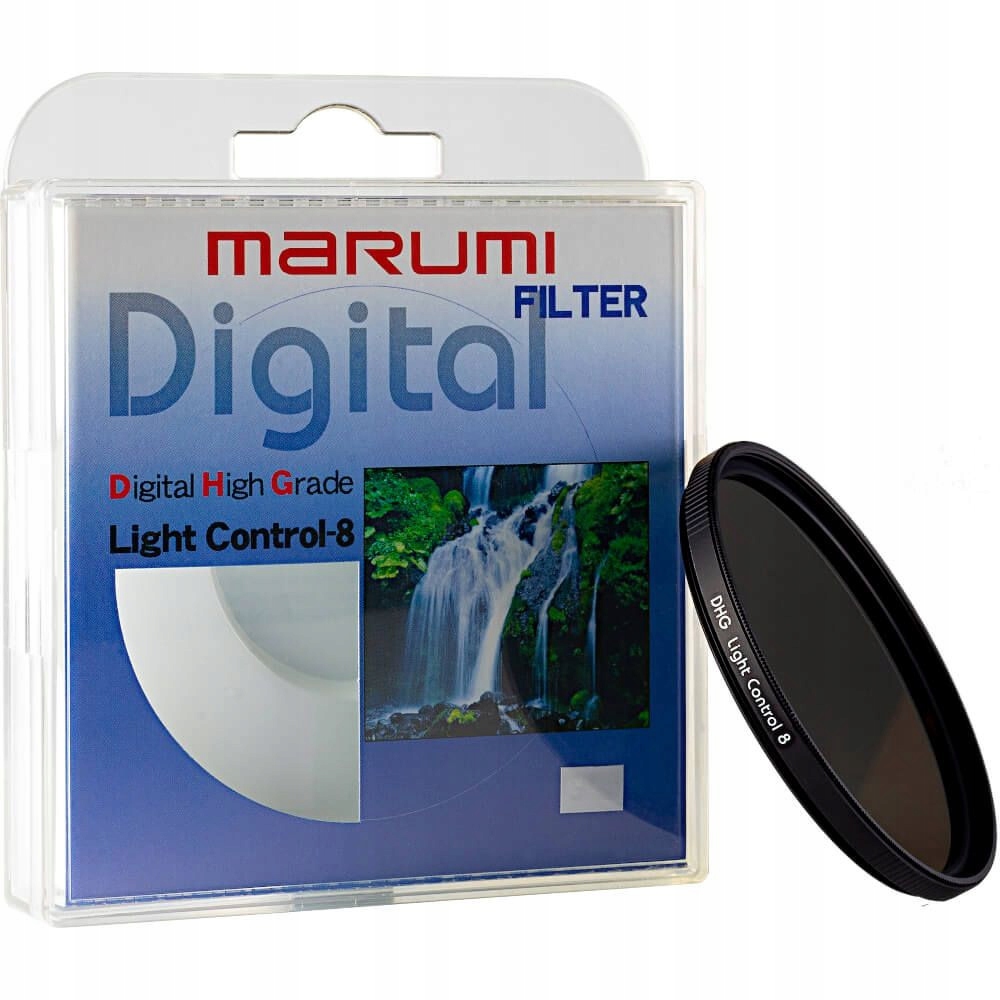 Нейтральный серый фильтр ND8 из серии Marumi DHG. Фильтры Light control-8 (ND8) — это нейтрально-серые фильтры высочайшего качества, уменьшающие количество света на 3 ступени. Это позволяет увеличить время экспозиции или работать с большей диафрагмой без необходимости изменения значения ISO.