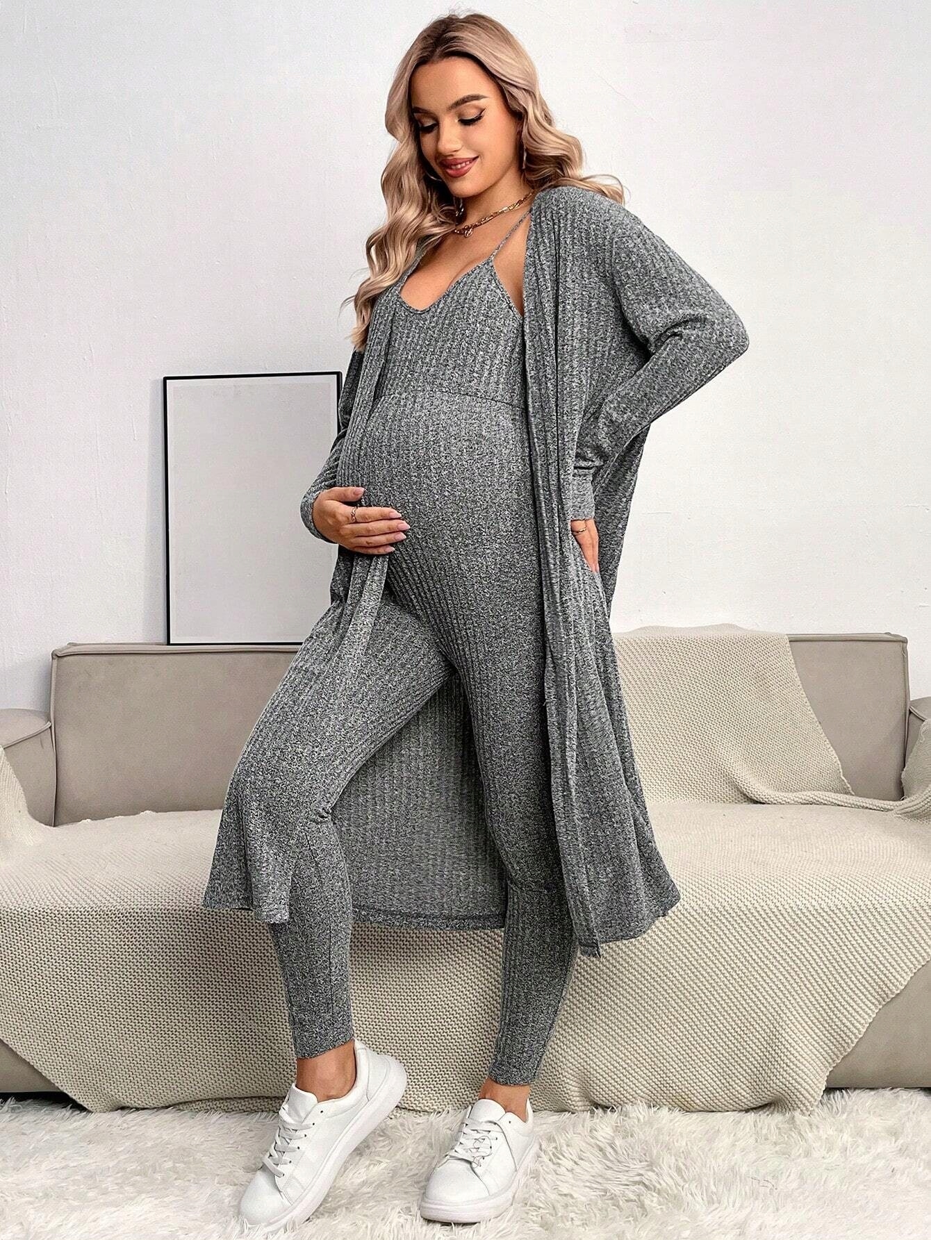 Сірий комбінезон для вагітних Shein + довгий кардиган M