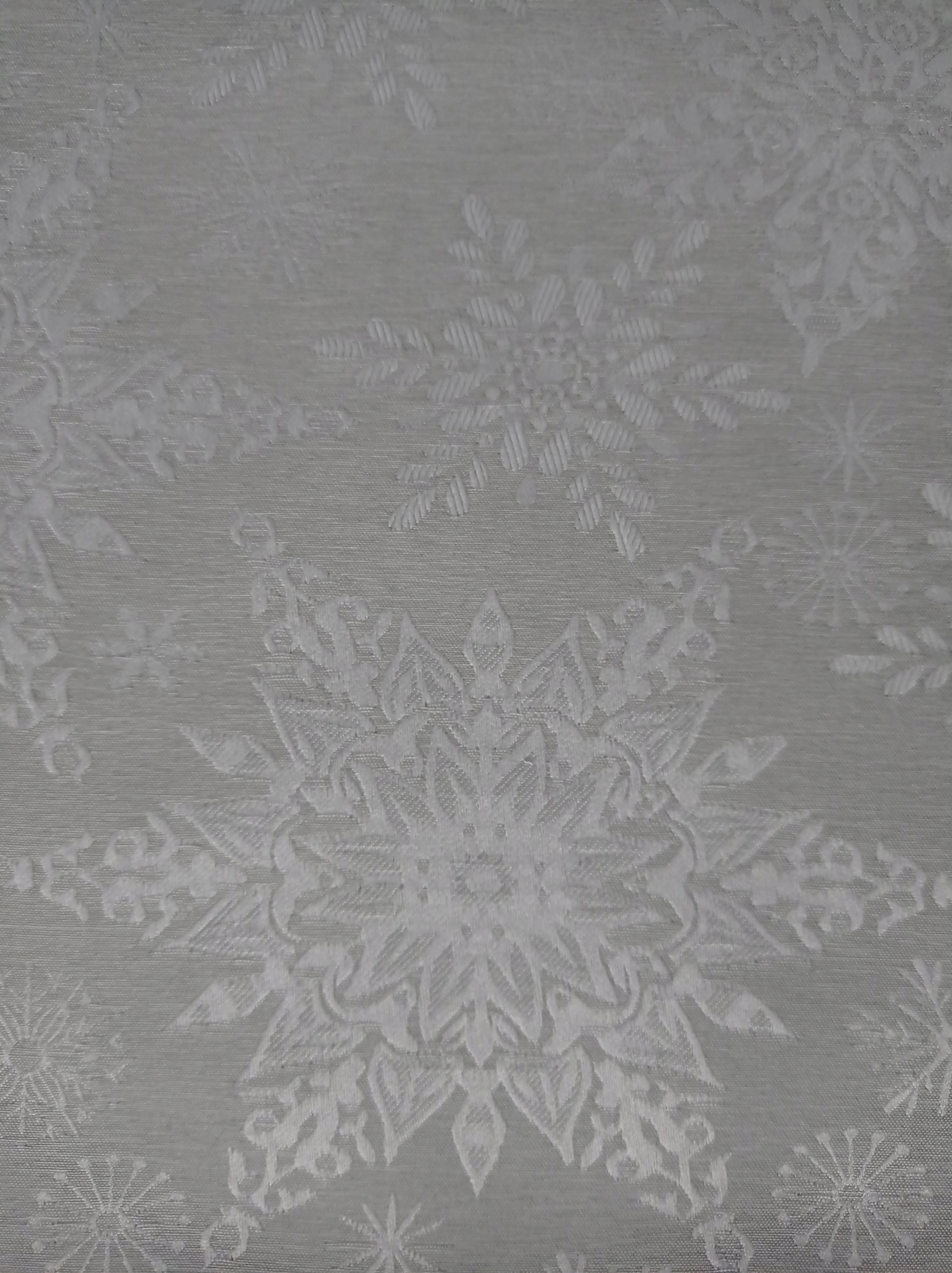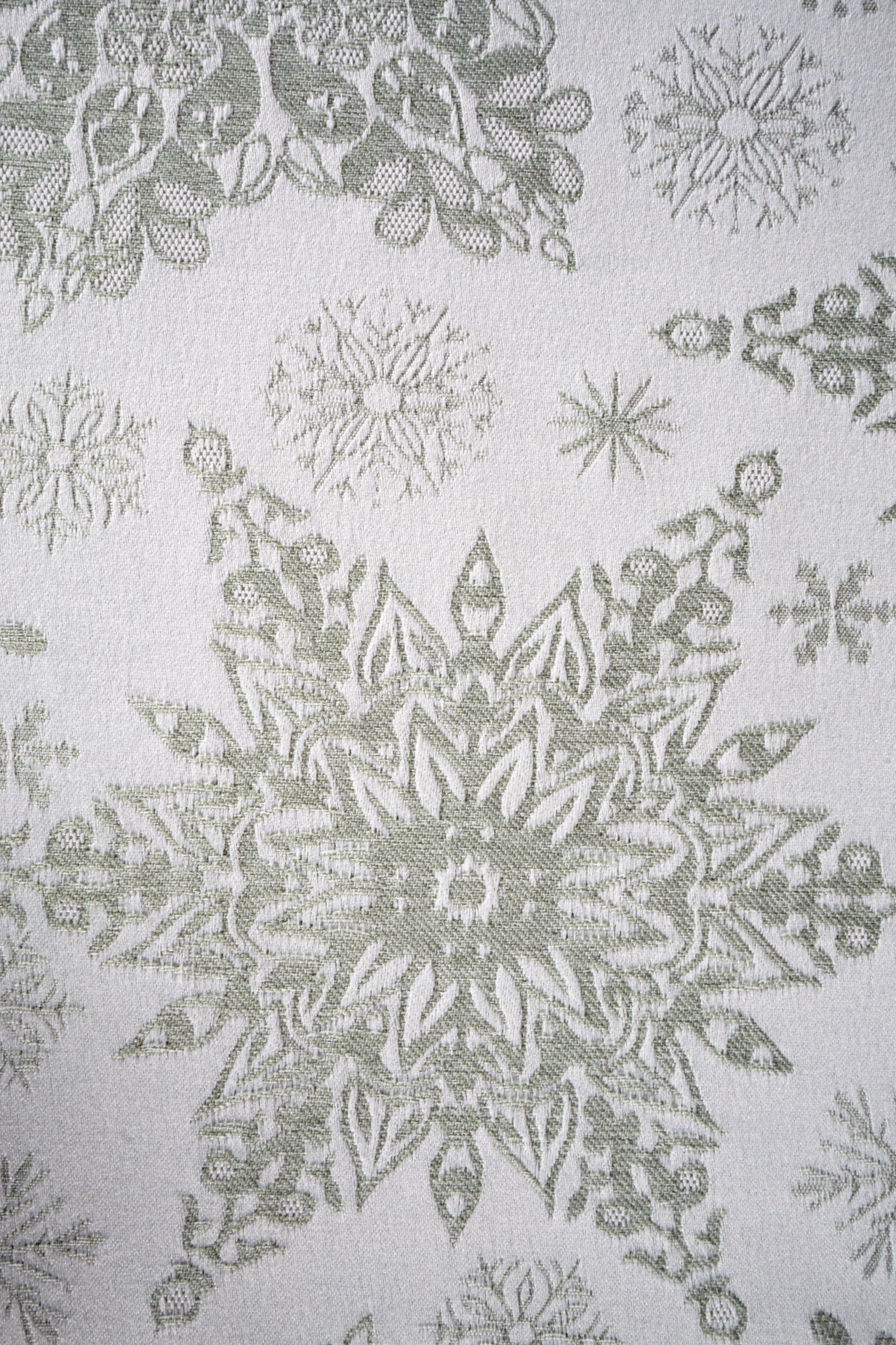 Стенка имеет два оттенка серого. С одной стороны, есть серый светящий с матовыми снежинками, а с другой - противоположность: скатерть - более матовая и Серебряные хлопья . Это позволяет вам использовать скатерти с обеих сторон, что означает, что она остается свежей дольше.