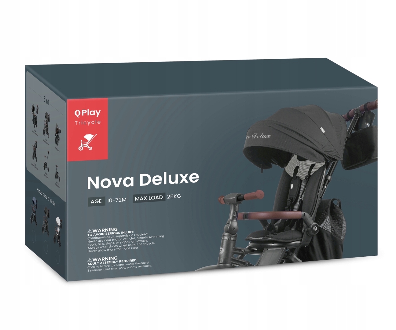 Трехколесный велосипед Qplay Nova Deluxe стабилен и безопасен, имеет современную алюминиевую конструкцию и удобное сиденье с контуром «360 градусов», позволяющее путешествовать вперед или назад лицом. Для его сборки не требуются инструменты – система быстрого складывания позволяет сложить велосипед за несколько простых движений. Велосипед оснащен барьером, защищающим ребенка от падения, пятиточечными ремнями безопасности и подножками. После демонтажа ручки управления, барьеров, капота и чехла сиденья Qplay Nova Deluxe Tricycle будет служить классическим трехколесным велосипедом для самостоятельного небольшого велосипедиста. Этот велосипед наверняка удовлетворит самый взыскательный вкус, компания QPLAY использовала последние цветовые тенденции и создала трехколесный велосипед с рамой с привлекательной кожаной отделкой, а для подчеркивания дизайна на капоте и сумке были использованы вставки с логотипом и названием. Все для повышения его привлекательности. Резиновые бескамерные колеса обеспечивают комфорт при движении. Функции свободного хода и свободного рулевого управления позволяют родителям спокойно следовать заданному маршруту. Кожаная отделка. Сшитое вручную оголовье и ручка для переноски, обтянутые мягкой эко-кожей, обеспечивают комфорт и элегантный вид. На навес на перилах размещен специальный дополнительный материал, закрывающий/защищающий от УФ-лучей. Дышащая подушка анатомической формы. Создан для комфорта ребенка и лучшей циркуляции воздуха. Легко складывающаяся конструкция модели Qplay Nova Deluxe делает велосипед чрезвычайно удобным для переноски. В комплект также входят сумка для покупок, сумка для подгузников и подстаканник с отделением для телефона — идеальное место для хранения бутылочек с водой, игрушек, закусок и салфеток!