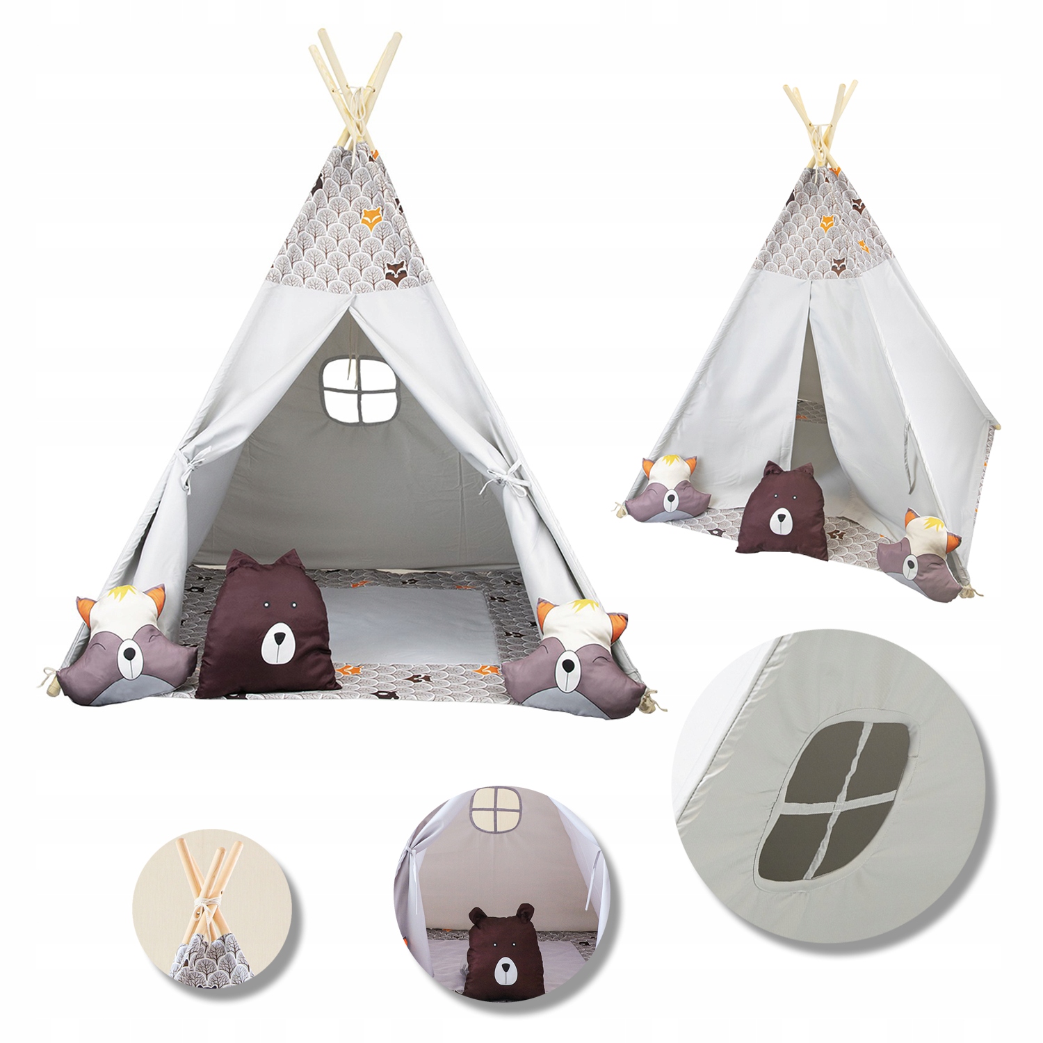 Удивительная палатка типи из серой лисы с тремя подушками и окном