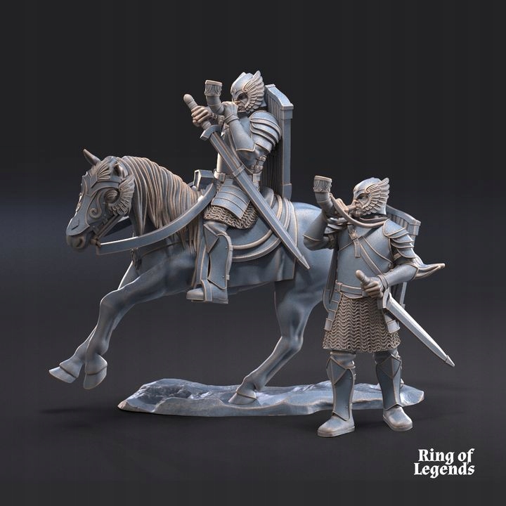 Серый замок с рогом на коне и на ноге — фигурки службы 3D-печати для ролевых игр или боевых игр