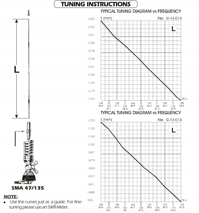- Длина: макс. 150 см (длина зависит от настройки к данной полосе) 46-61MHz/2DB 135-175MHz