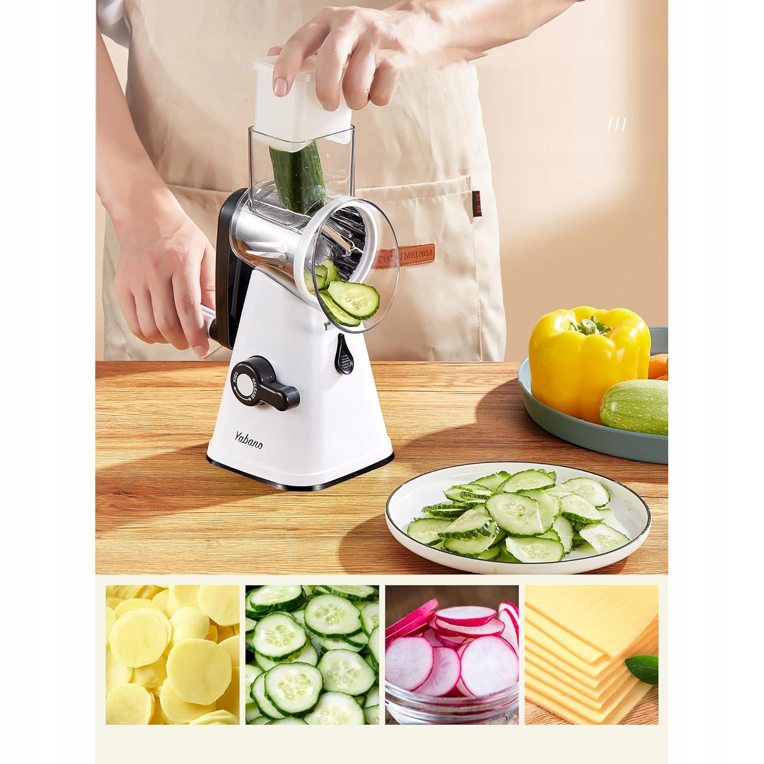 🥔【Съемная ручная овощерезка 3-в-1】Эта овощерезка, свернутая вручную, представляет собой совершенно новую слайсер 3-в-1: лезвие для нарезки, лезвие для измельчения, сборка лезвия не требуется. Им можно нарезать огурцы, кабачки, картофель, морковь, арахис, грецкие орехи, крекеры, сыр, орехи, шоколад и многое другое. Незаменимая вещь на вашей кухне.