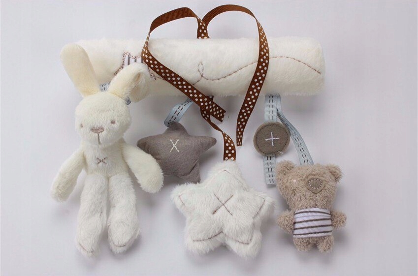 Подвеска для коляски изготовлена из мягкого и приятного на ощупь материала. сенсорный материал.