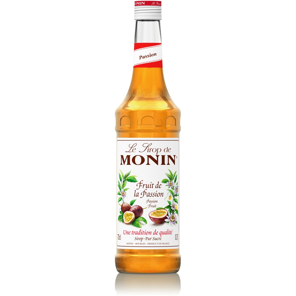 Сироп Moninfruit de la Passion отличается интенсивным желтым цветом с оранжевыми отблесками и интенсивным вкусом спелых тропических фруктов. Этот сироп в основном используется в качестве ингредиента в напитках и лимонадах. Его также часто используют как добавку к пиву, газированной воде или чаю.