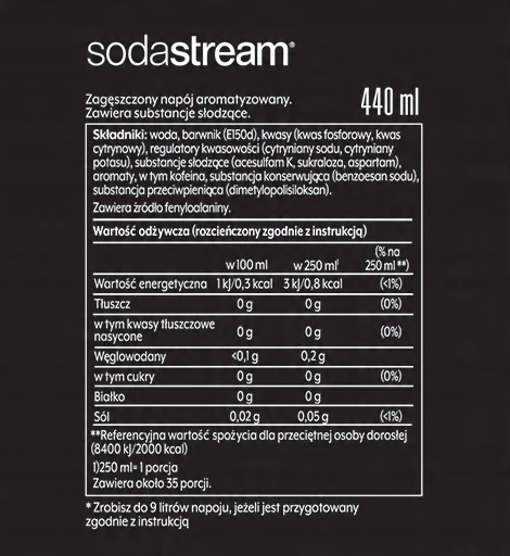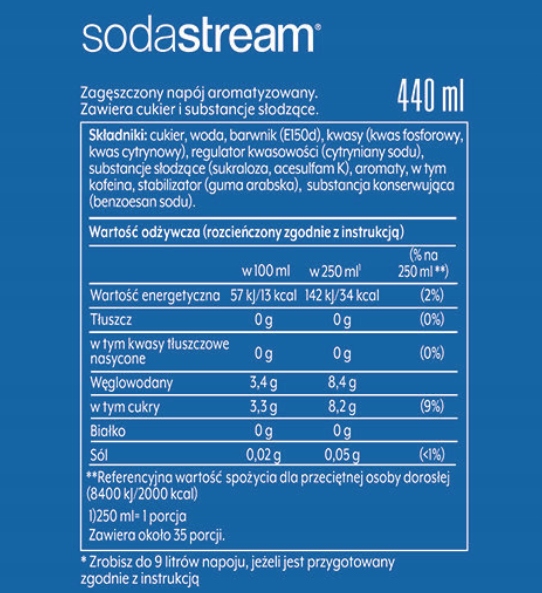 Концентрат Pepsi SodaStream 440 мл предназначен для карбонизаторов SodaStream, но также может использоваться для разбавления родниковой и минеральной воды.