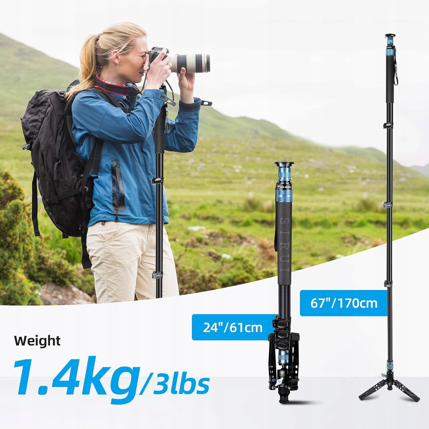 Универсальность и экономия места. Профессиональный алюминиевый монопод экономит место и вес по сравнению с полноценным штативом, сохраняя при этом высокую грузоподъемность.