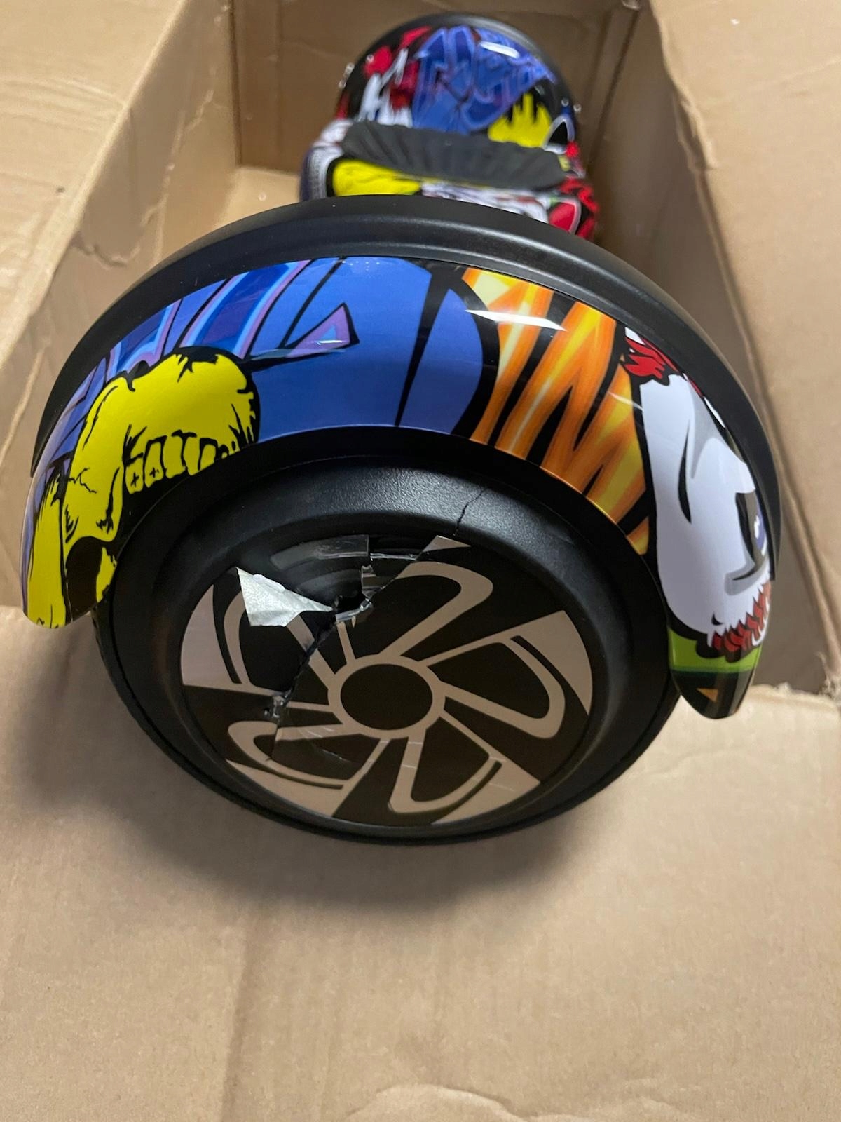 Предметом предложения является новый ховерборд, который поврежден при транспортировке и не работает должным образом. Товар продается как поврежденный, без диагностики и без гарантии работоспособности. Предложение адресовано людям, осведомленным о техническом состоянии - под ремонт или на запчасти. Покупка означает принятие описанных условий.