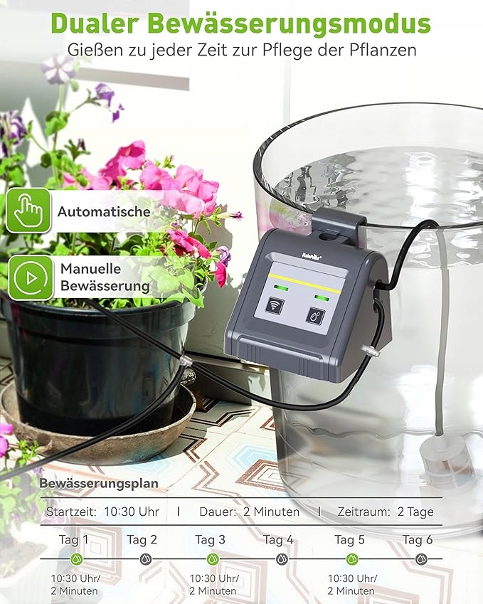 - беззаботный праздник - Приложение удаленного управления: благодаря приложению Rainpoint вы можете удаленно настроить многие планы орошения, и уведомления отправляются в приложение, когда «автоматический» ирригационный план или насос уже не включен вода. Вам не нужно беспокоиться о том, что ваши растения увядают из -за отсутствия воды, даже если вы находитесь в отпуске. Позволяет настроить график орошения до местной погоды, влажности, температуры, восхода солнца/заката или количества недель. Режим регулируемого времени позволяет установить время орошения от 20 до 30 минут и частота полива от 1 часа до 24 часов или от 1 дня до 7 дней. /b> применение дождя оно позволяет добавлять несколько членов семьи и их участие в совместном управлении горшечными растениями