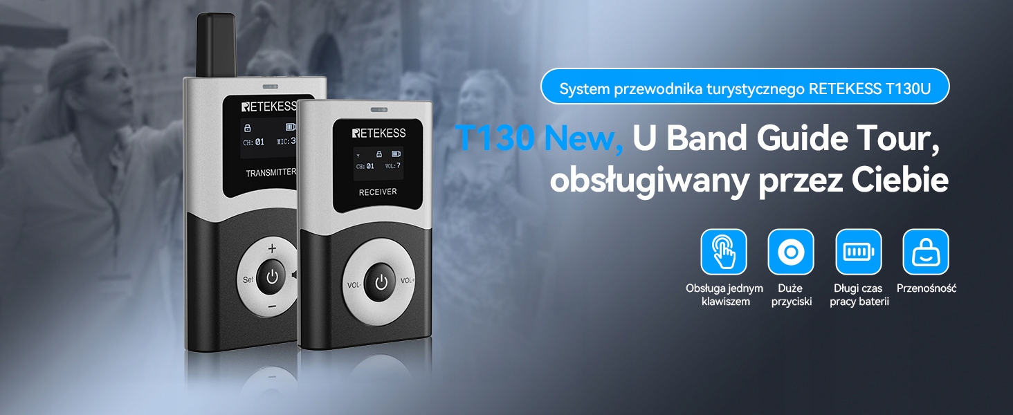 Беспроводные передатчики системы туристической гид можно обычно использовать при зарядке с помощью Bowerbanks, транспортных средств или транспортных средств. Кроме того, корпус зарядки также может быть использован для зарядки T130U.