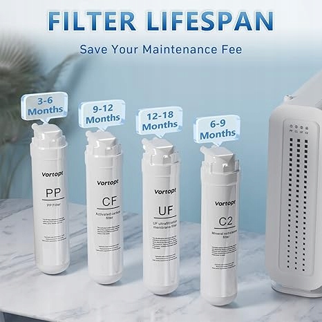 - Срок службы фильтра 18 месяцев. Усовершенствованная конструкция ультрафильтрационной мембраны продлевает срок службы до 18 месяцев, что больше, чем у большинства фильтрующих продуктов на рынке, что снижает частоту замены фильтра в будущем и экономит затраты на техническое обслуживание в будущем. Система обеспечивает более эффективную фильтрацию, чем обычные фильтры для воды, поэтому у вас всегда будет чистая и полезная питьевая вода. Кроме того, фильтру PP 6 месяцев, фильтру CF 12 месяцев и фильтру C2 9 месяцев